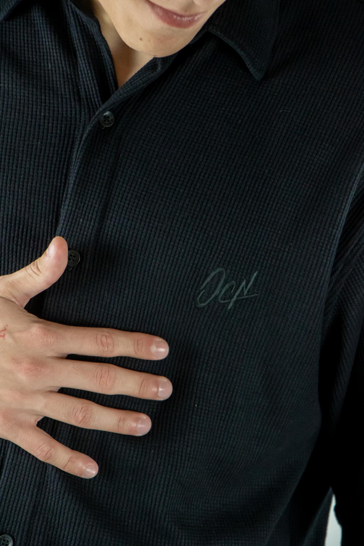 Camisa Ocn Negro en tela Nido de Abeja .