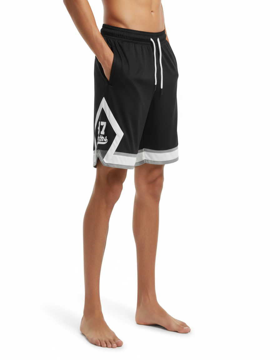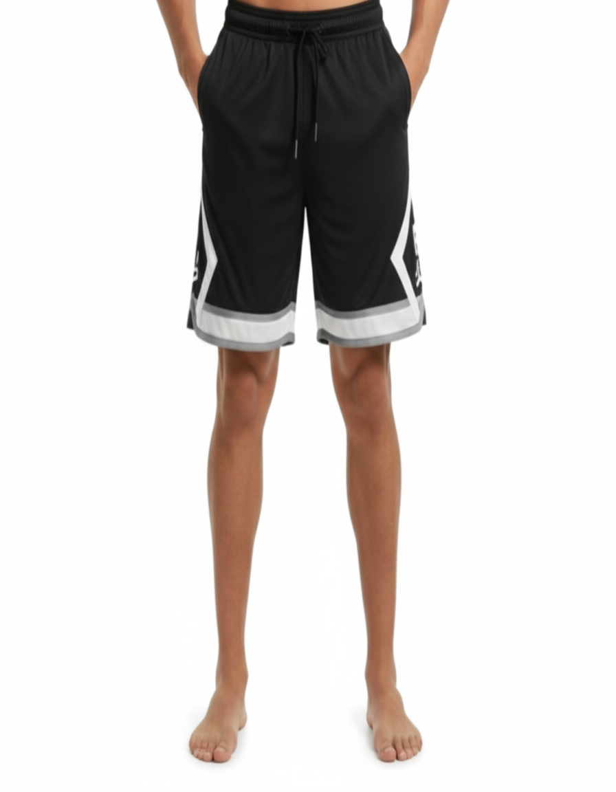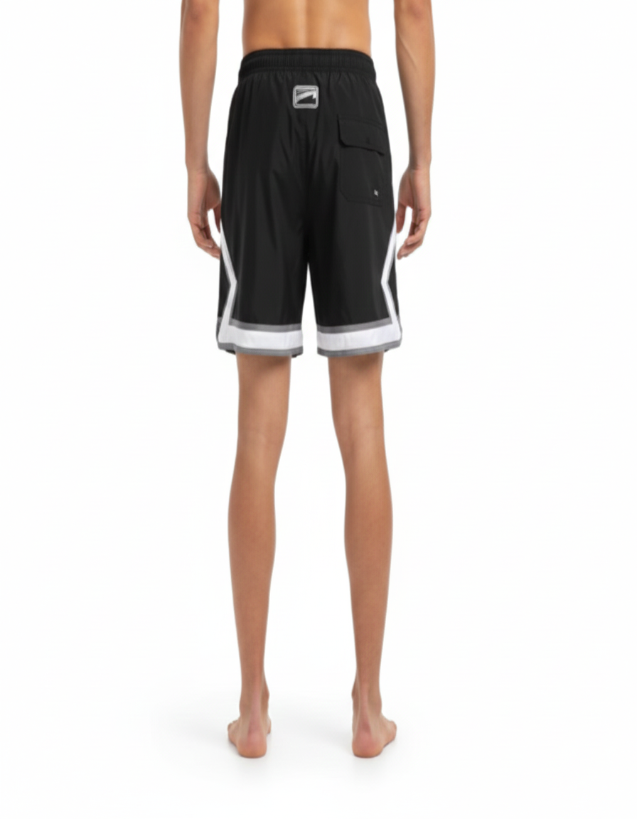 Material: sire (Fino y Fresco para el Verano). Bermuda en color Negro , borde en Color Blanco, y gris los costados de la prenda sobre la terminacion, elástico en la cintura y ajuste con cordones Negros combinando con los detalles de la Bermuda.